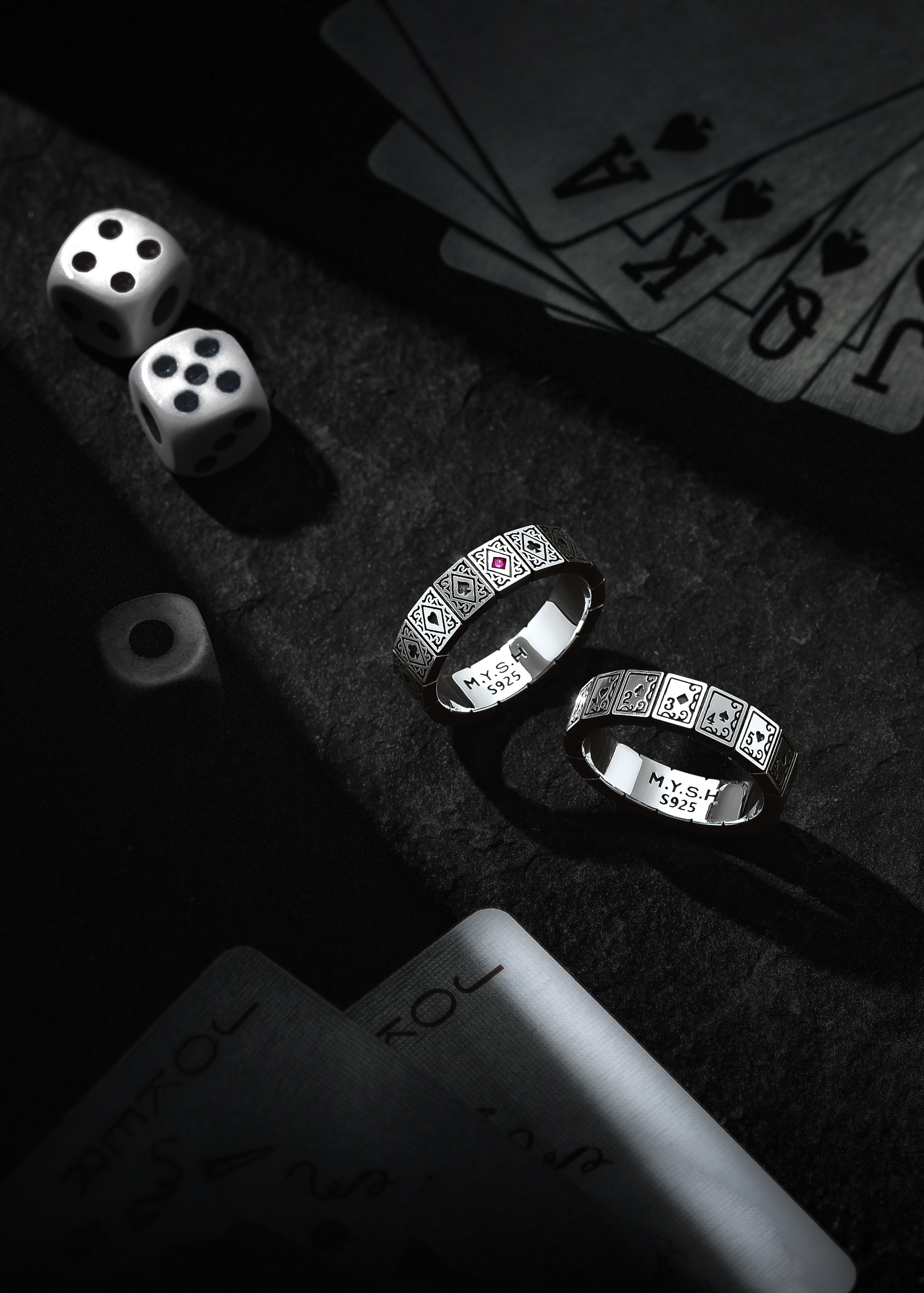 • Crafted for the fearless. Our Vegas Nights Series infuses the thrill of the casino into precision-crafted silver rings—every spin of the dice, every flip of the card, becomes a symbol of your unshakable poise.