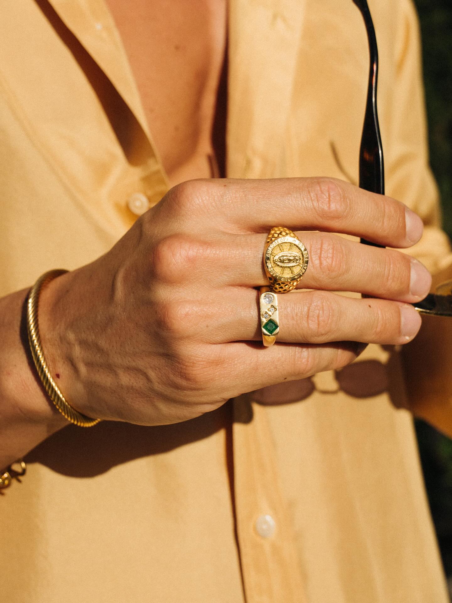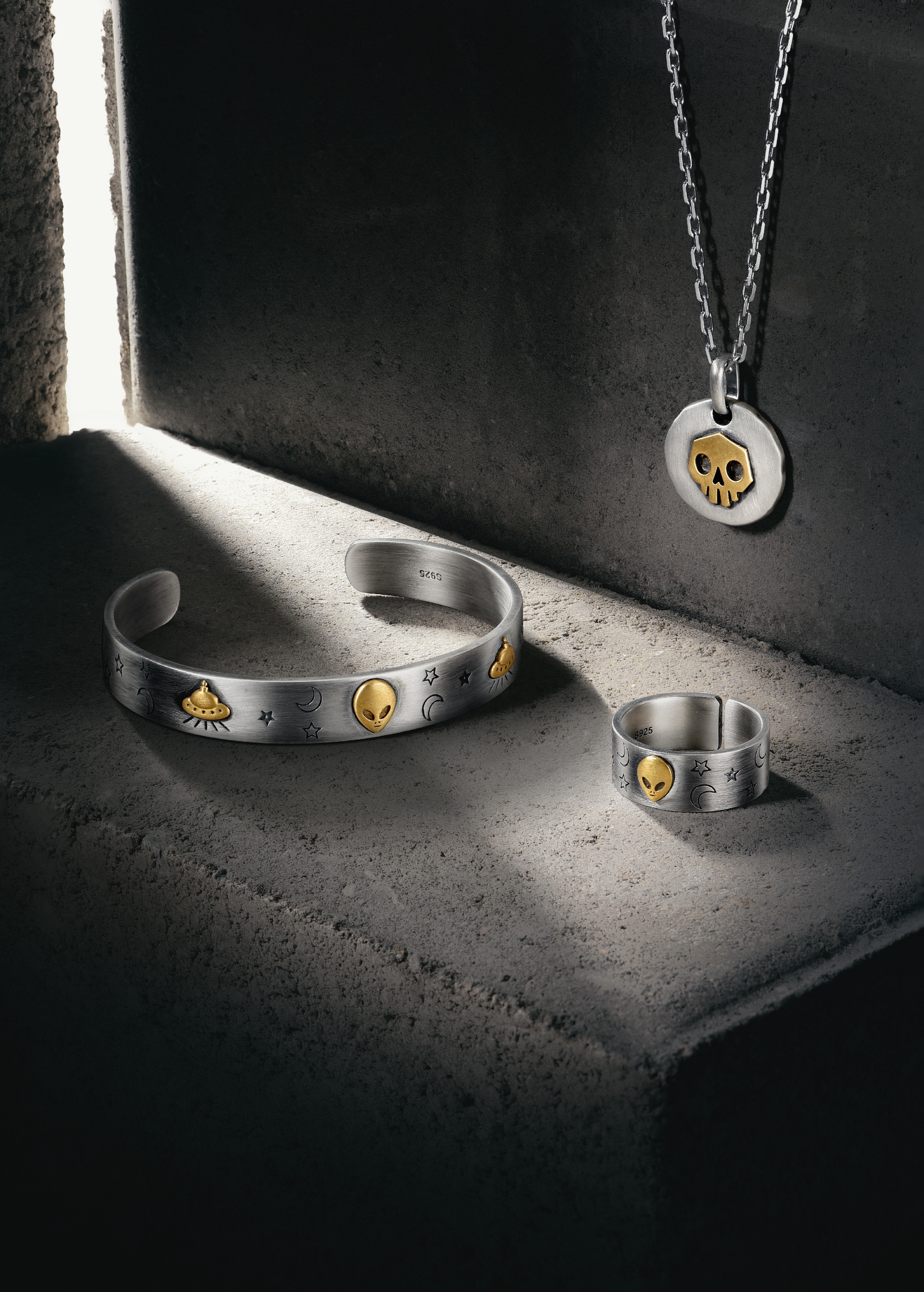• Playful, hand-engraved silver pieces that blend celestial motifs and edgy doodles—where every piece is a wearable canvas of bold, lighthearted style.