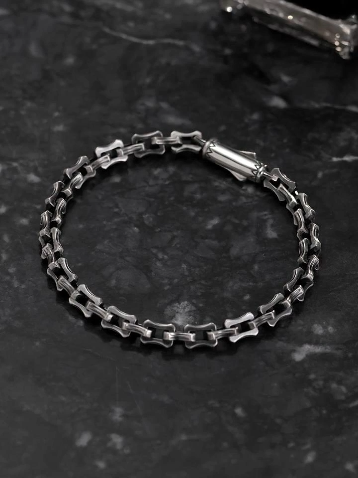 Bone-Link Curb Chain Bracelet-Retro Black