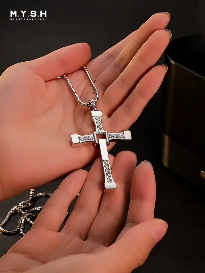 S925 silver cross pendant accented with sparkling pave-set diamonds along the arms and center. Clean, modern geometric design with a bold, masculine feel — perfect for everyday wear, faith expression, or as a meaningful statement piece.